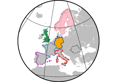 The plot region can be specified through ISO country codes (for example,