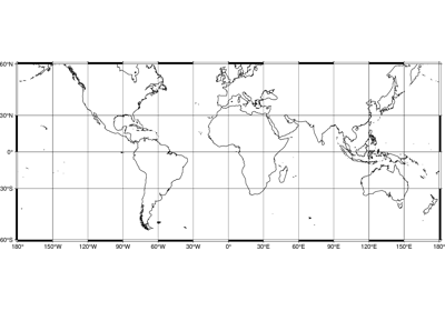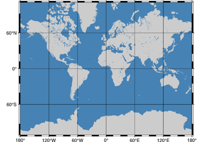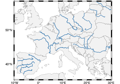 Plot continents, countries, shorelines, rivers, and borders. |